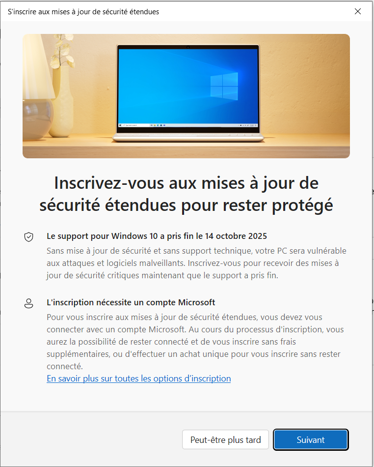 Le dispositif est expliqué par Microsoft à la page : https://learn.microsoft.com/fr-fr/windows/whats-new/extended-security-updates