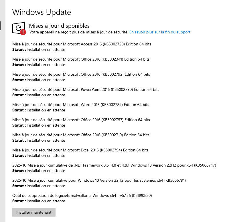 (illustrations capturées après le 14/10/2025 et avant inscription aux mises à jour de sécurité étendues)