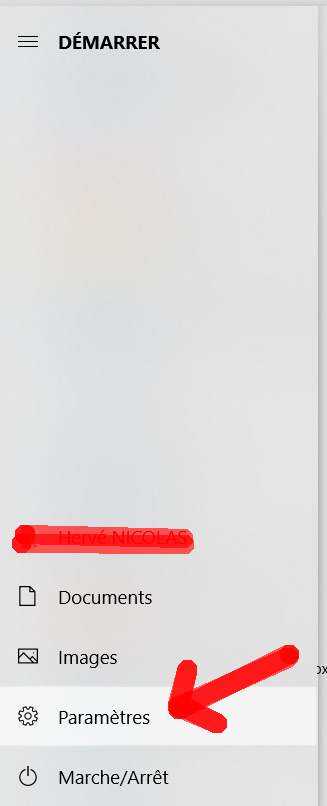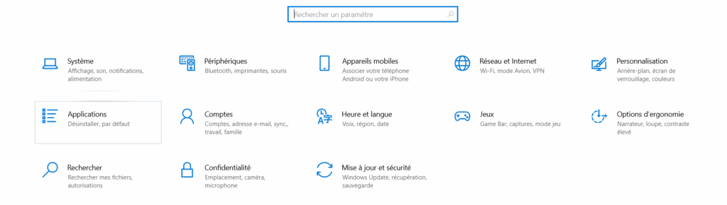 On arrive dans le menu global Paramètres :